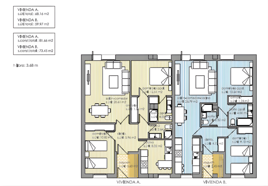 🏡 Distribuciones de 2 dormitorios pensadas para el máximo aprovechamiento del espacio.
